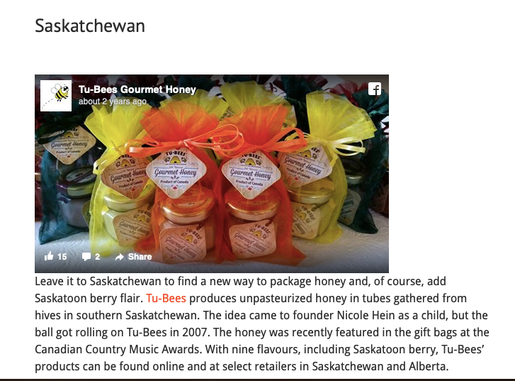 Continue ReadingYou can only imagine our surprise when we came across this article: "Where to find the best honey and honey-related products in every province" and our company was "the" company for Saskatchewan!