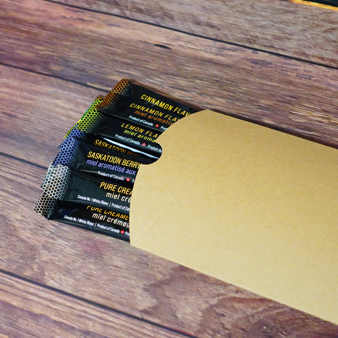Contains 12 mini honey packets in a variety of our most popular flavours.