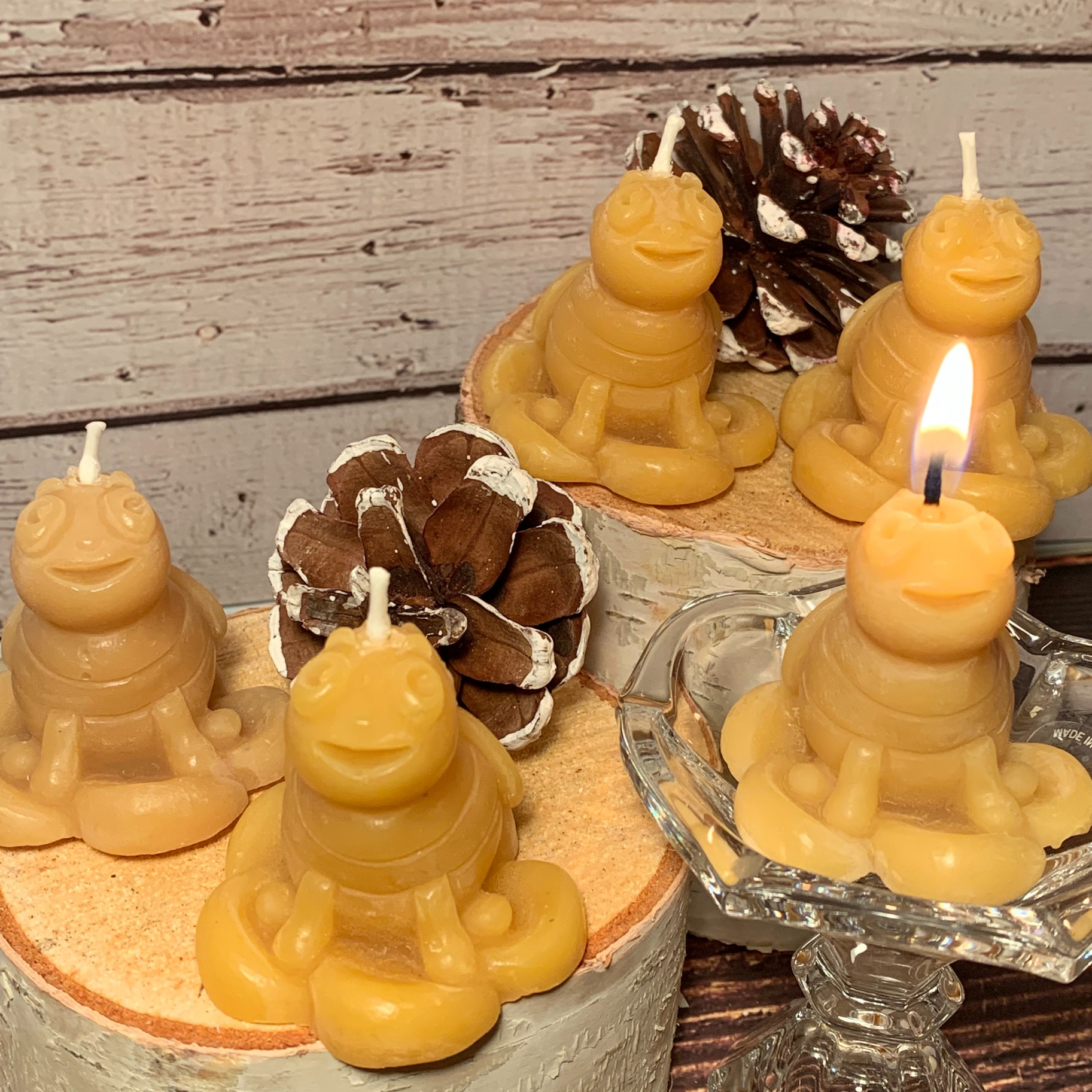 Each happy bee votive will provide you with approximately 5 hours of burn time while you enjoy the mild aroma that only natural beeswax can produce. Beeswax is non-toxic, environmentally friendly, and will burn with little to no soot.